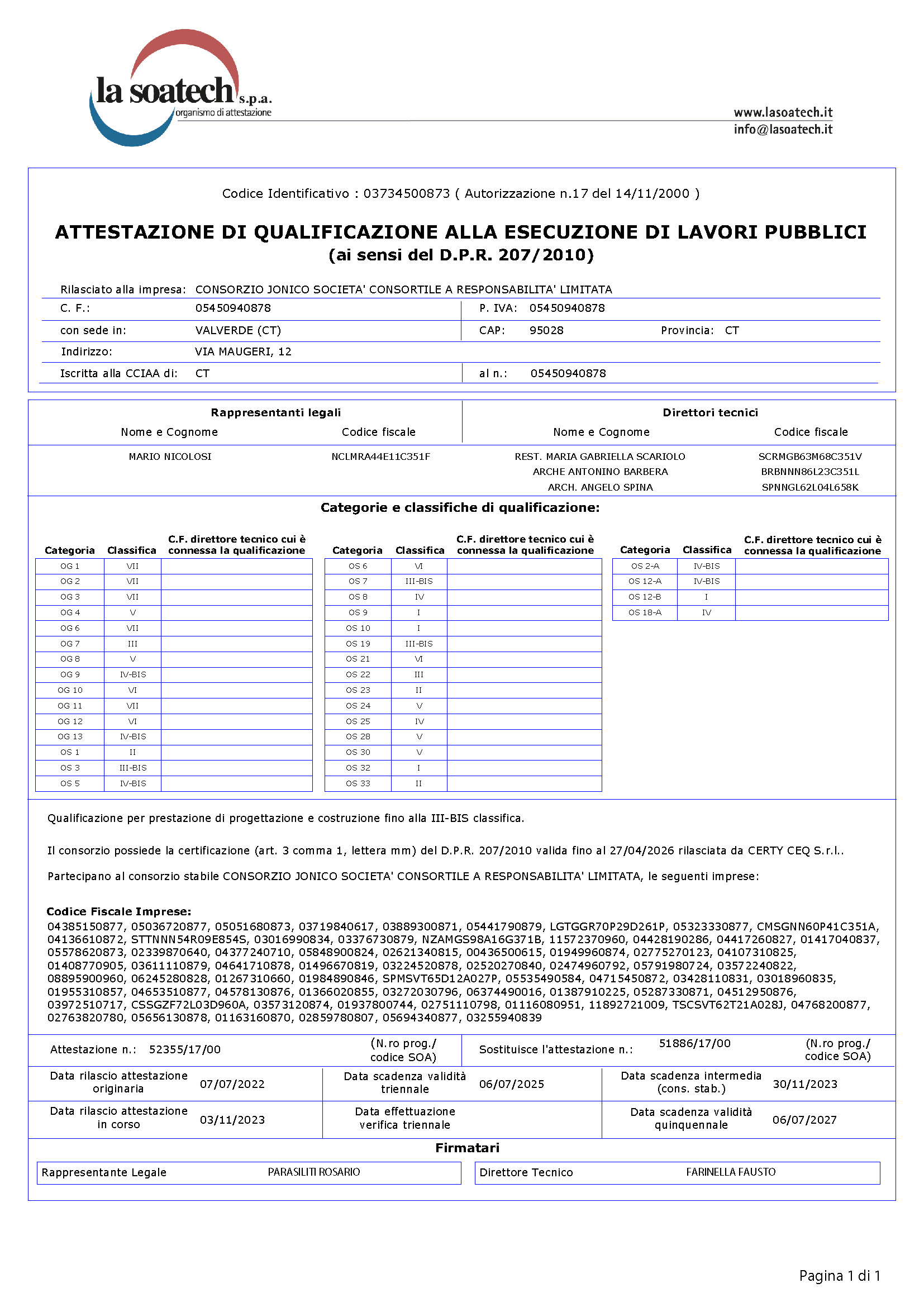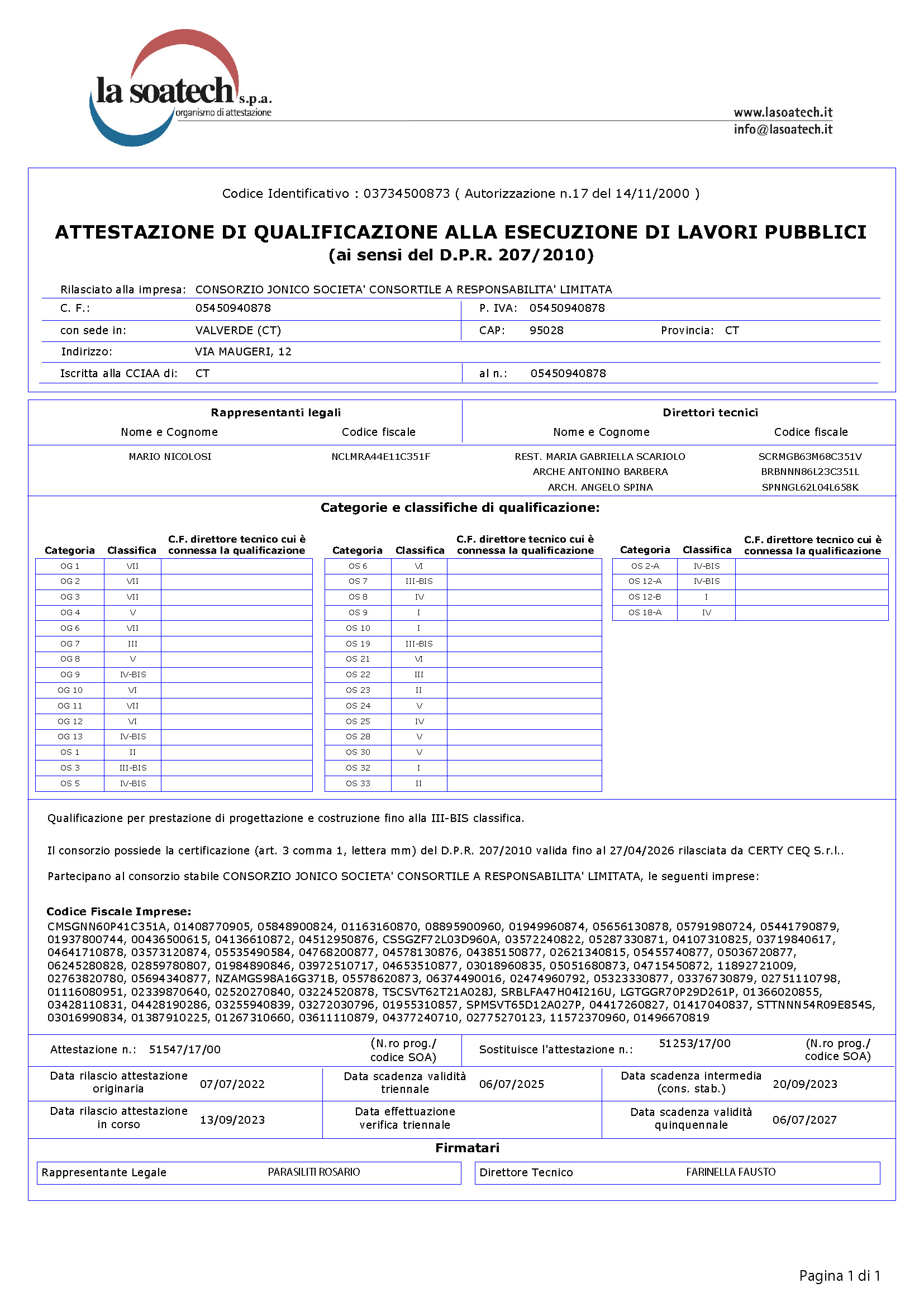 Il Consorzio Jonico dispone di comprovata esperienza e di adeguata struttura aziendale per la partecipazione alle gare d’appalto in molti settori dei lavori pubblici